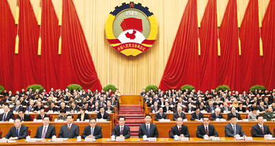 3月3日,中国人民政治协商会议第十二届全国委员会第一次会议在北京人民大会堂开幕。贾庆林向大会作工作报告。本报记者 雷 声摄