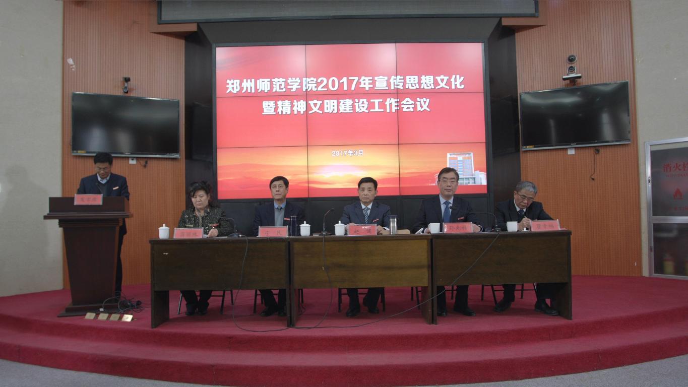党委书记赵健指出,今年是党的十九大召开之年,是实施十三五规划的重要一年,也是我们迎接2018年教育部本科评估的关键之年,做好今年的工作意义重大。就会议落实,赵健提出三点要求:一是要认清形势,提高认识,增强做好新时期宣传思想文化工作和精神文明建设的责任感和使命感。全体宣传思想工作战线的同志要正确认识新常态,做好新形势下的宣传思想和精神文明建设工作,坚持正确的舆论导向和价值取向,为党的十九大召开营造良好思想舆论环境。二是要创造创新,凝心聚力,立足学校内涵发展构建大宣传大文化协同育人格局。(一)强化大宣传理念,促进媒体的高度融合。推进报、刊、栏等传统媒体与网络新媒体的融合,实现学校宣传思想文化工作在内容、渠道、方法上的创新。(二)在加快构筑全国重要的文化高地宏伟目标中深化我们的校园文化内涵,树立精品意识。围绕《关于实施中华优秀传统文化传承发展工程的意见》,充分利用学校的优势资源,建设体现时代特征、地域特色和学校特质的校园文化,丰富学生精神世界,增强学生文化自信。(三)凝心聚力,实现我校全员全过程参与国家文明单位的连创工作。不仅要在文明创建中凸显高校的资源优势,又要将连建工作以品牌的形式叫响、叫亮;各部门要相互协作,顺利实现国家文明单位的成功连创。(四)树立身边典型,弘扬正能量,为迎评促建加油鼓劲。充分挖掘师生身边典型人物事迹,讲好师院故事,把身边榜样的力量转化为师生为迎评促建做贡献的生动实践。三是要增强阵地意识,加强队伍建设,牢牢掌握宣传思想和精神文明建设工作的主动权。切实抓好课堂的阵地管理,严格落实好学术研究无禁区、课堂教学有纪律这一要求,以社会主义核心价值观为引领,让年轻人成为中国梦的建设者与实践者。要从政治建设、作风建设和能力建设入手,大力加强宣传思想战线干部队伍建设。