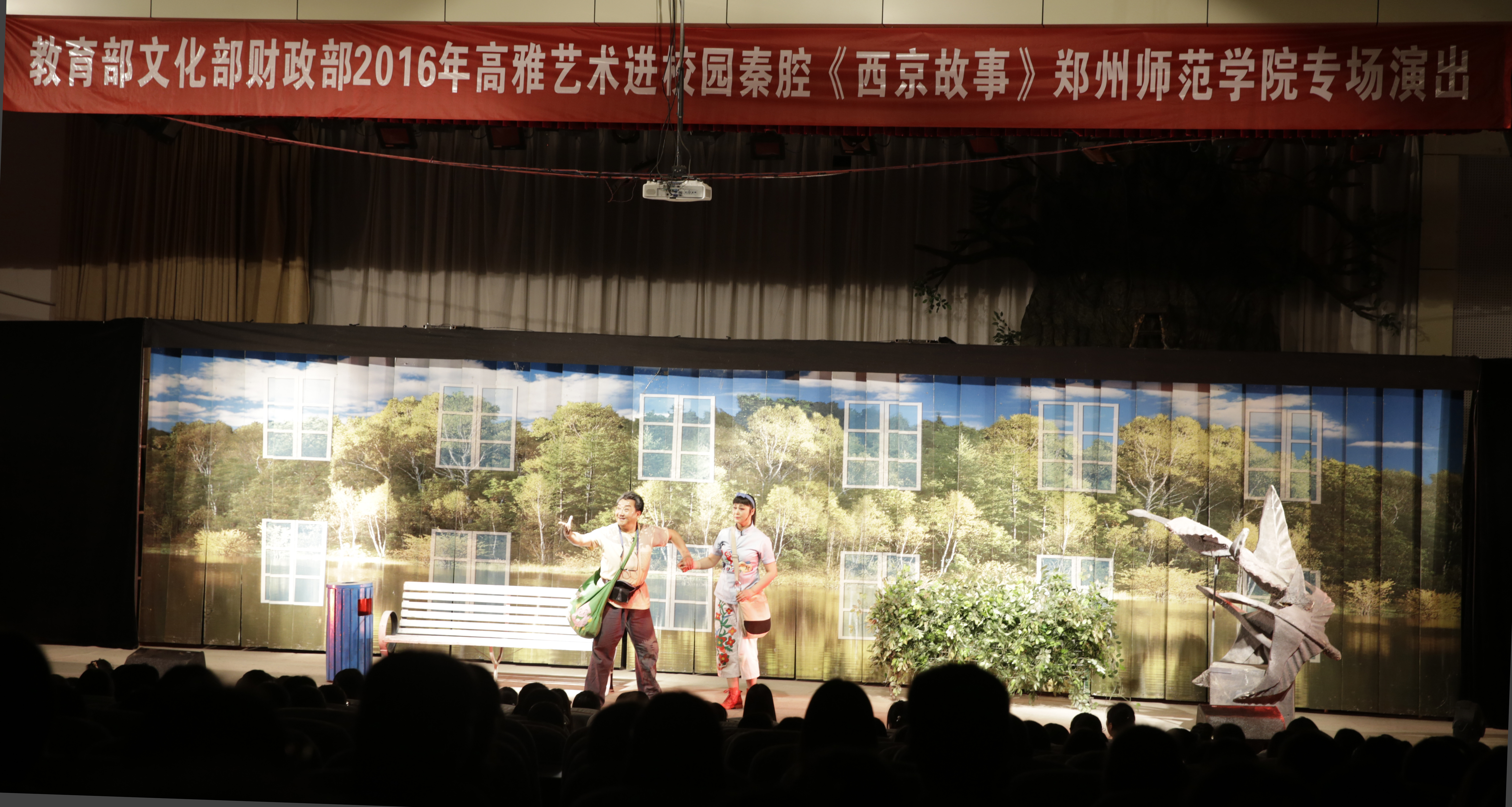 《西京故事》自2012年起,连续四年参加教育部文化部财政部“高雅艺术进校园”活动,曾荣获中宣部第十二届精神文明建设“五个一工程”优秀作品奖,也是继东方歌舞团之后第二家到我校演出的外省专业团队。《西京故事》主要讲述了一个租着数十位农民工的西京大院中又迎来了一家四口来西京寻梦的故事。现实与理想的巨大落差,让老罗家的一双儿女不断成长,千年老树与紫薇树王的守望者也在情节发展中继续守望着生活。