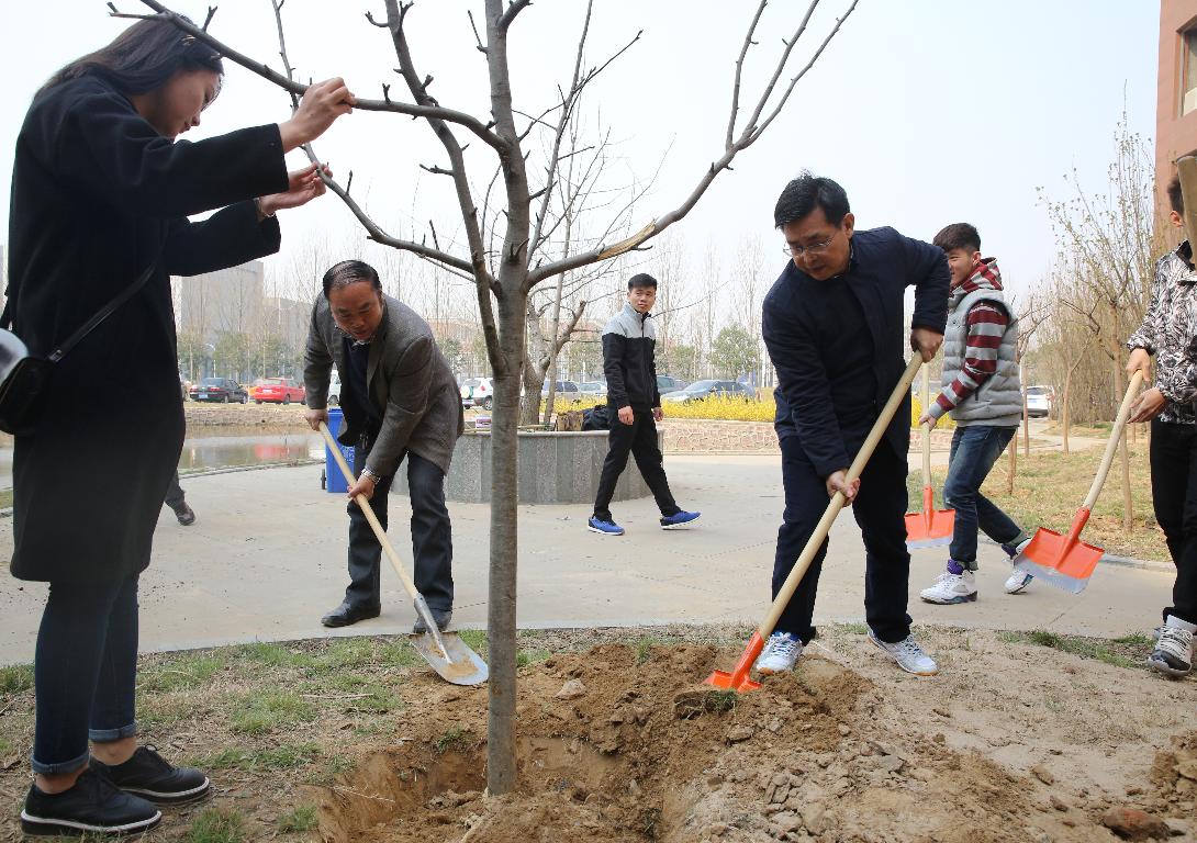 春回大地万物复苏,植树添绿正当时,3月14日上午,全体校领导和部分师生来到东校区经管学院西侧和综合训练馆门前参加义务植树活动,用实际行动建设绿色校园。