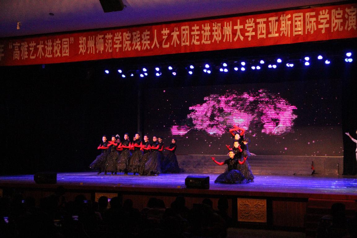 11月10日,2015“高雅艺术进校园”—郑州师范学院专场演出在郑州职业技术学院正式拉开序幕。此次活动由河南省教育厅、文化厅和财政厅主办,郑州师范学院承办。郑州师范学院音乐与舞蹈学院和特殊教育学院残疾人艺术团的师生,分赴省内部分高校,为观众们奉献了一场场精彩的文艺演出。