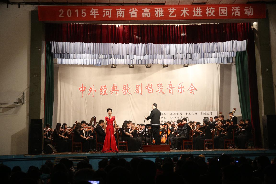 10日至12日,校领导于向英、弓民、翟幸福带领音乐与舞蹈学院的师生分别走进郑州职业技术学院、河南工业大学、河南农业职业学院进行演出。此次音乐会由多首中外经典剧目组成,有经典重现的《白毛女》选段、充满浪漫文艺色彩的《一首桃花》、婉转动人的《我亲爱的爸爸》、充满生机活力的《卡门》序曲等十几个经典剧目唱段。其中,郑州师范学院歌剧中心主任姬海冰教授为大家带来的《斗牛士之歌》和《不要再去做情郎》,将剧目中人物形象演绎的淋漓尽致,在场观众听得如痴如醉,演出获得了广大师生的一致好评。