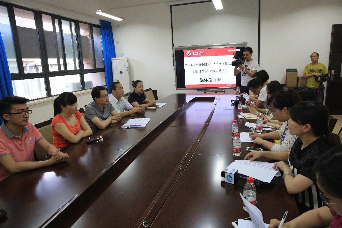 5月20日,河南电视台、河南日报、郑州人民广播电台、凤凰网、腾讯网等近二十家媒体齐聚特教楼会议室,参加我校从央视“出彩中国人”栏目载誉归来的残疾人艺术团 “年度出彩之星”媒体见面会。特殊教育学院负责人申培新、高宏,残疾人艺术团指导老师董晶晶、马上,以及残疾人舞蹈团的学生代表与媒体见面。见面会由宣传部程帆副部长主持。