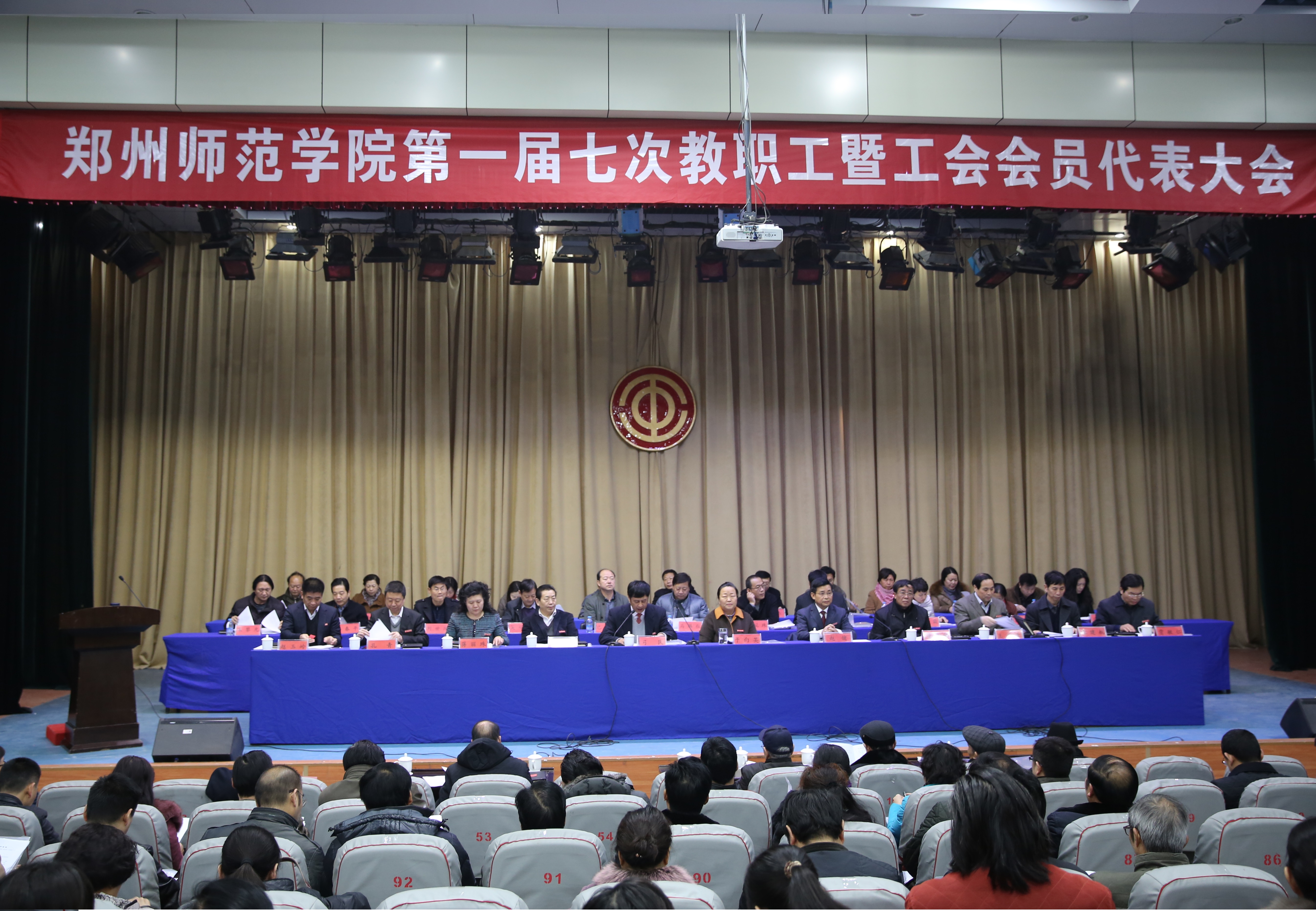 大会由校党委副书记、工会主席弓民主持,代表们认真听取并审议了校党委副书记、校长赵健的《学校工作报告》,审议了党委副书记、工会主席弓民的书面《工会工作报告》,审议了副校长孔青的《学校财务工作报告》和金长江同志的《工会经费审查报告》,听取了副校长王北生关于《郑州师范学院章程》制定情况的说明,通过了相关决议。