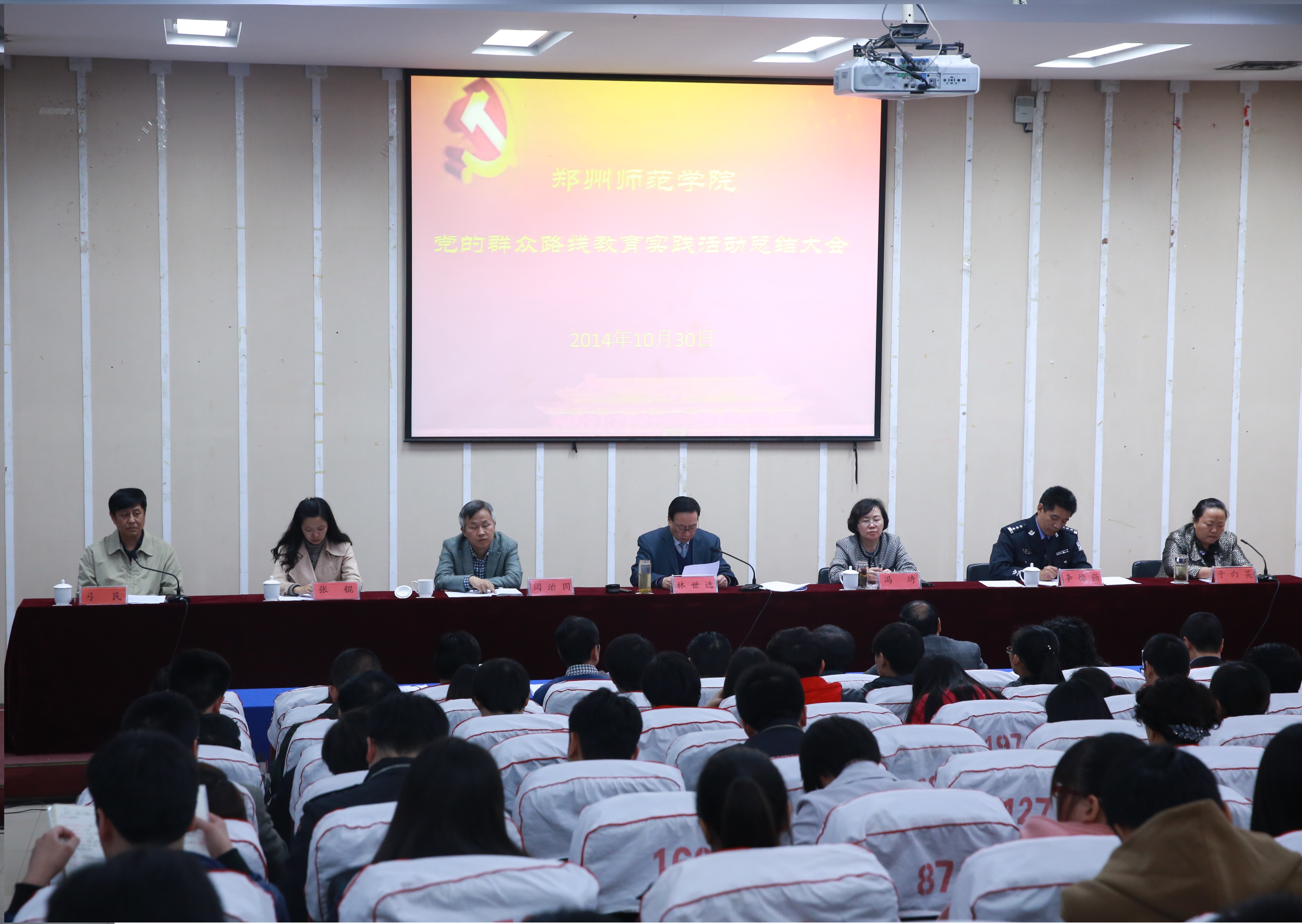 10月30日下午,我校在1号楼报告厅召开了群众路线教育实践活动总结大会。省委第二十督导组组长、郑州轻工业学院原党委书记林世选;第二十督导组副组长、省科学技术协会副主席冯琦;省教育厅机关党委副书记闫治国;省公安厅纪委巡视办副主任李德强;省发改委纪检监察室副主任科员张锟出席大会,校领导于向英、弓民、翟幸福、张进峰、王北生、蒋丽珠、张建航、孔青、贾敏仁出席大会,正副处级干部和部分教师学生代表参加大会。大会由党委副书记、工会主席弓民主持。