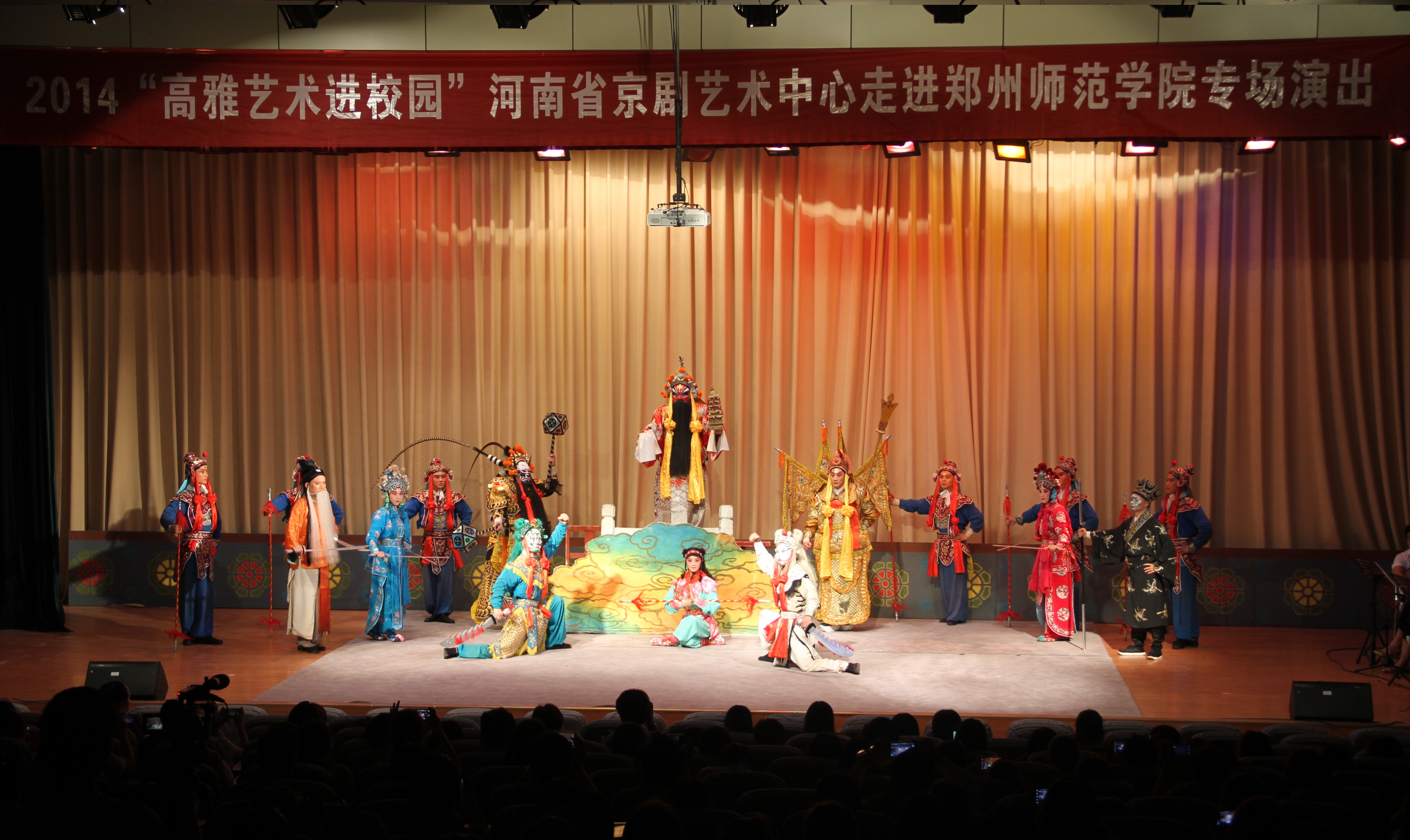 9月23日下午,2014年河南省“高雅艺术进校园”--河南省京剧艺术中心专场演出在我校七号楼报告厅成功举行。我校党委副书记、工会主席弓民和近600名师生共同观看了演出。