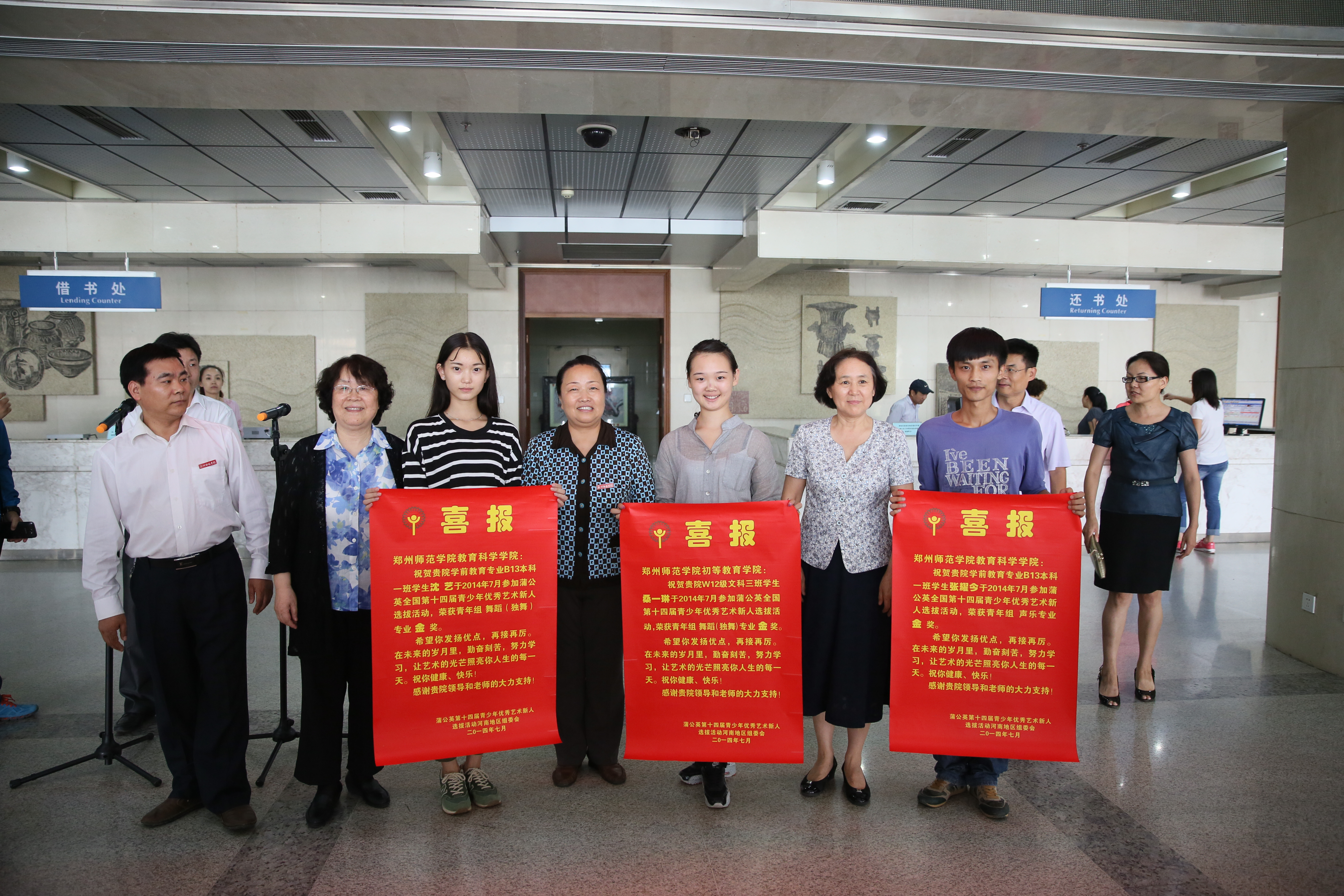 9月9日,蒲公英第十四届青少年优秀艺术新人选拔活动颁奖仪式在我校图书馆2楼大厅举行。河南省国资委监事会原主席、蒲公英青少年优秀艺术新人选拔活动组委会顾问晁凤仙,蒲公英青少年优秀艺术新人选拔活动组委会秘书长貊大瑞,我校党委书记于向英出席活动。
