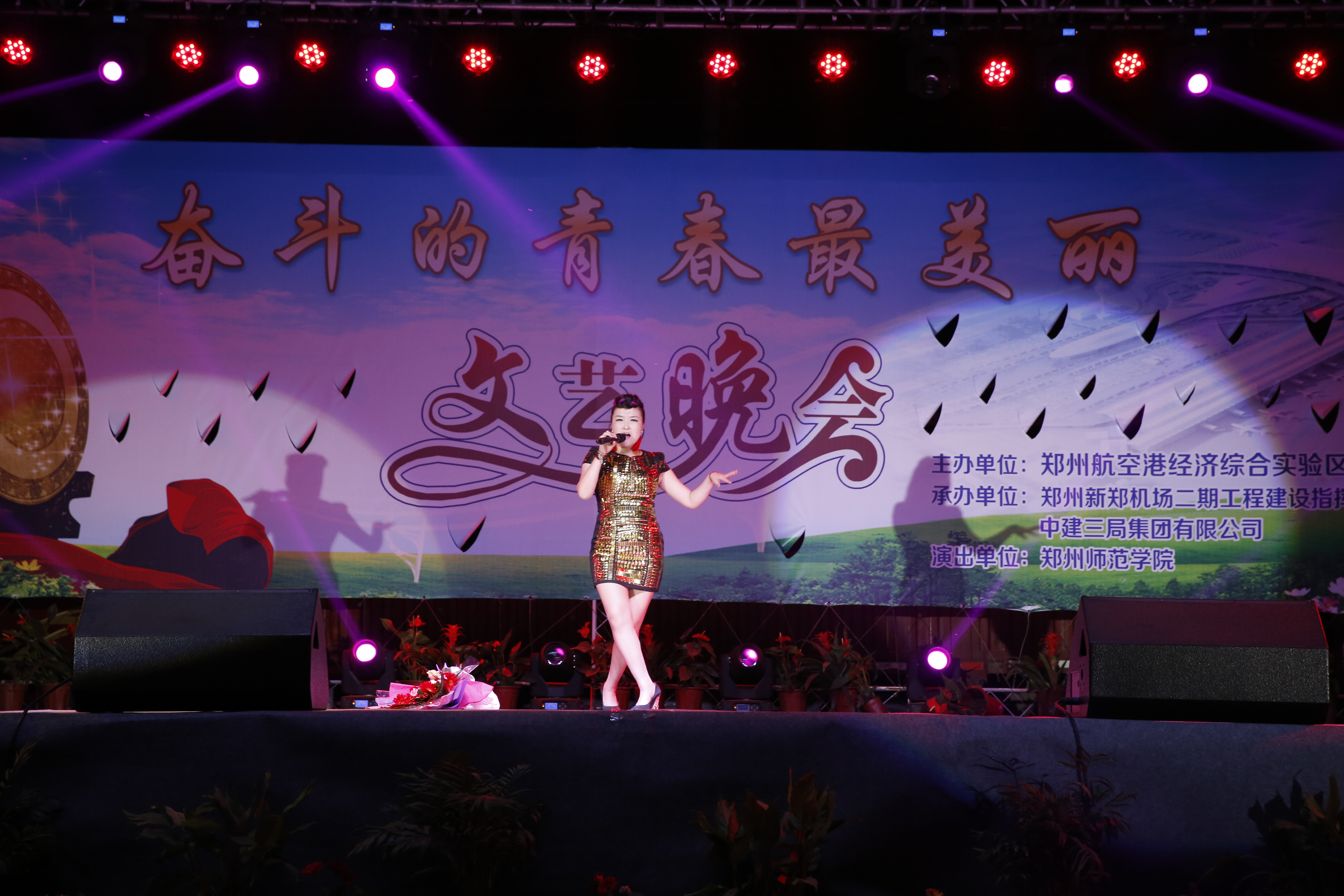 晚会伊始,郑州航空港经济综合实验区党工委副书记赵新中、郑州机场二期工程项目指挥部总工程师郭强对我校深入航空港建设一线慰问演出表示热烈地欢迎,并希望在今后的工作中,航空港区和师院携起手来,在经济社会大发展的浪潮中,共谱一曲美好的奋斗之歌。