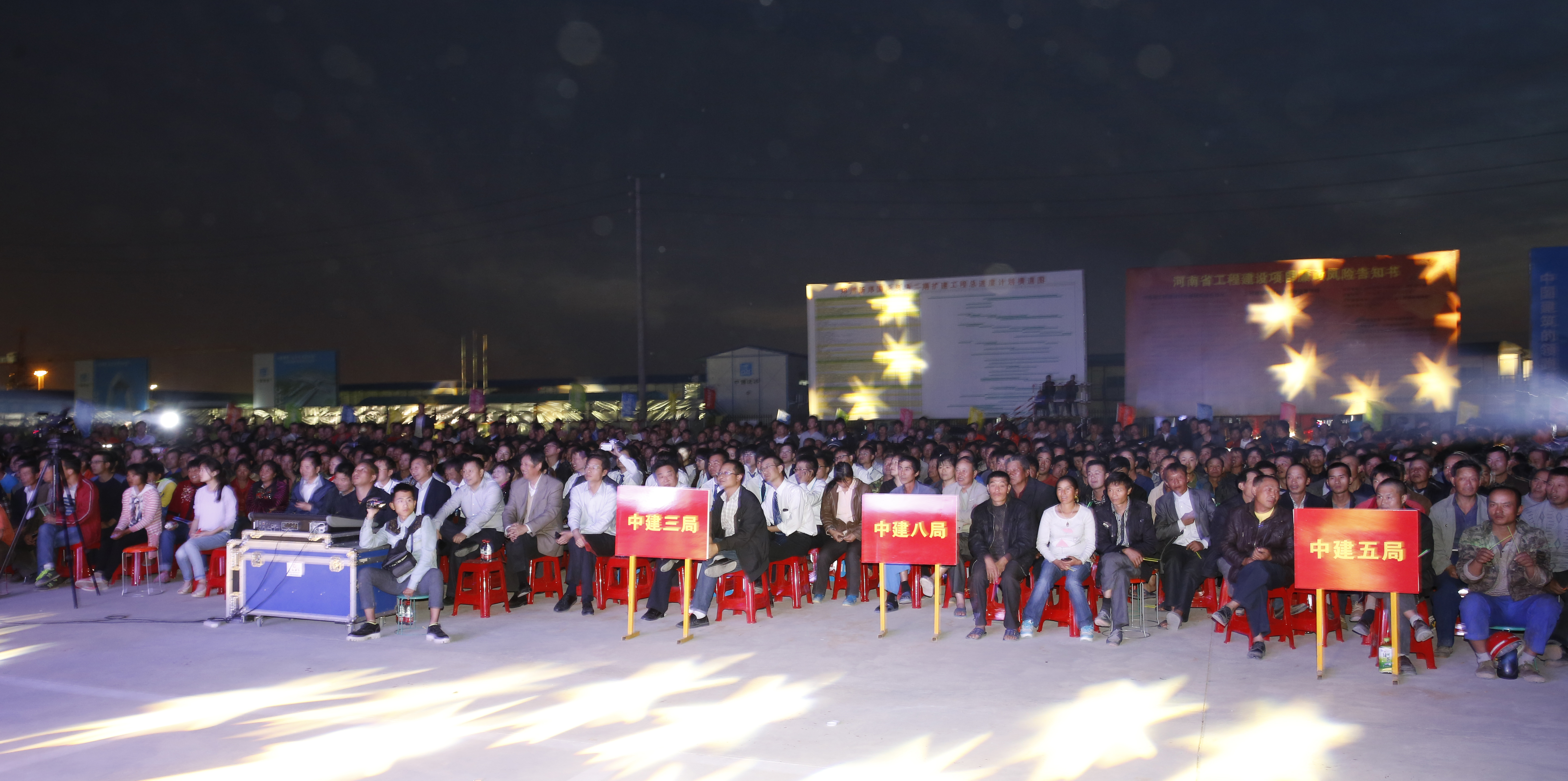郑州航空港经济综合实验区党工委副书记赵新中、郑州机场二期工程项目指挥部总工程师郭强、我校党委副书记、工会主席弓民、郑州航空港经济综合实验区党群工作部部长季玉成、中建三局工会副主席钟荣东、中建三局分公司副总经理马学辉等共同观看演出,