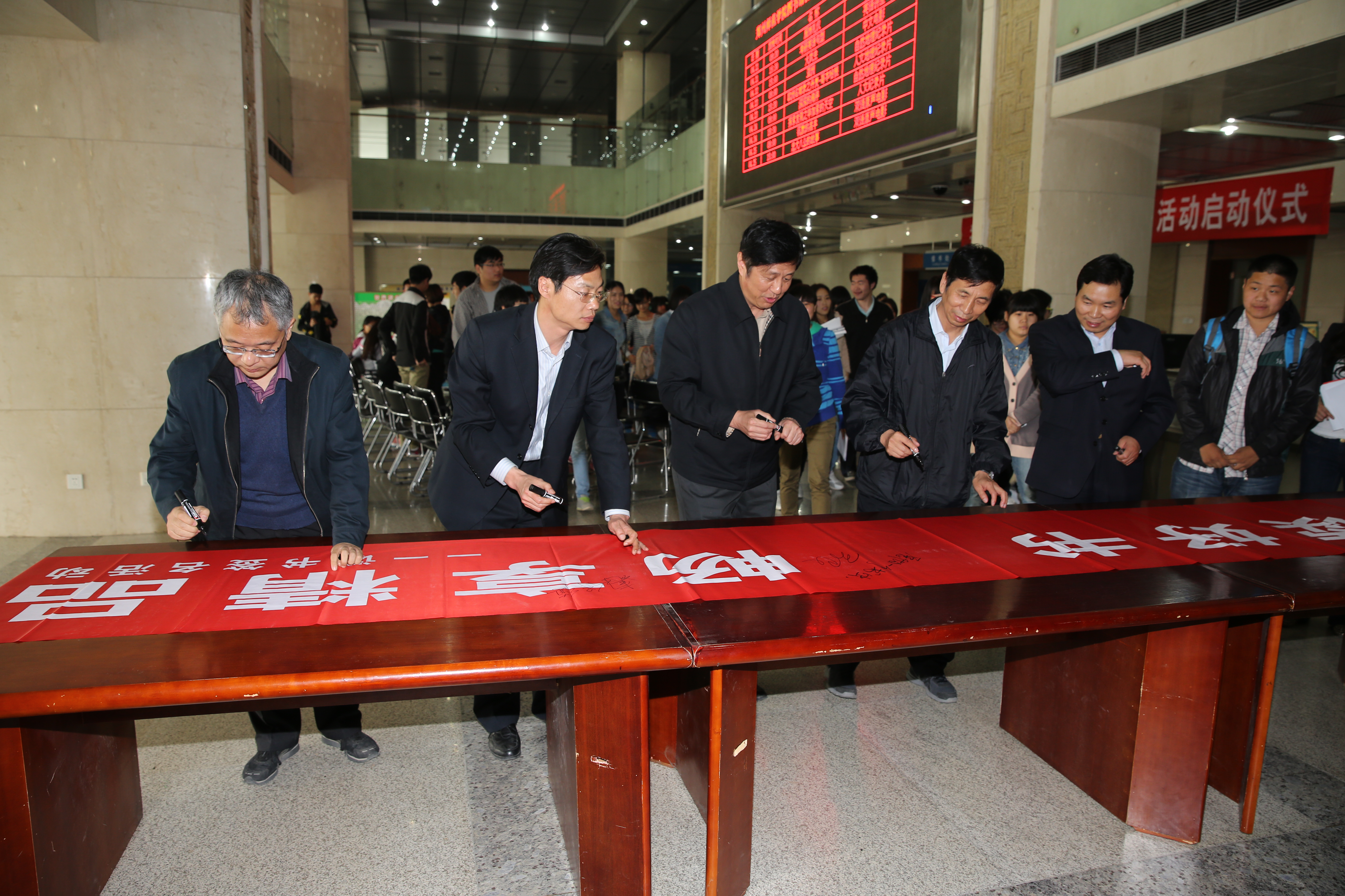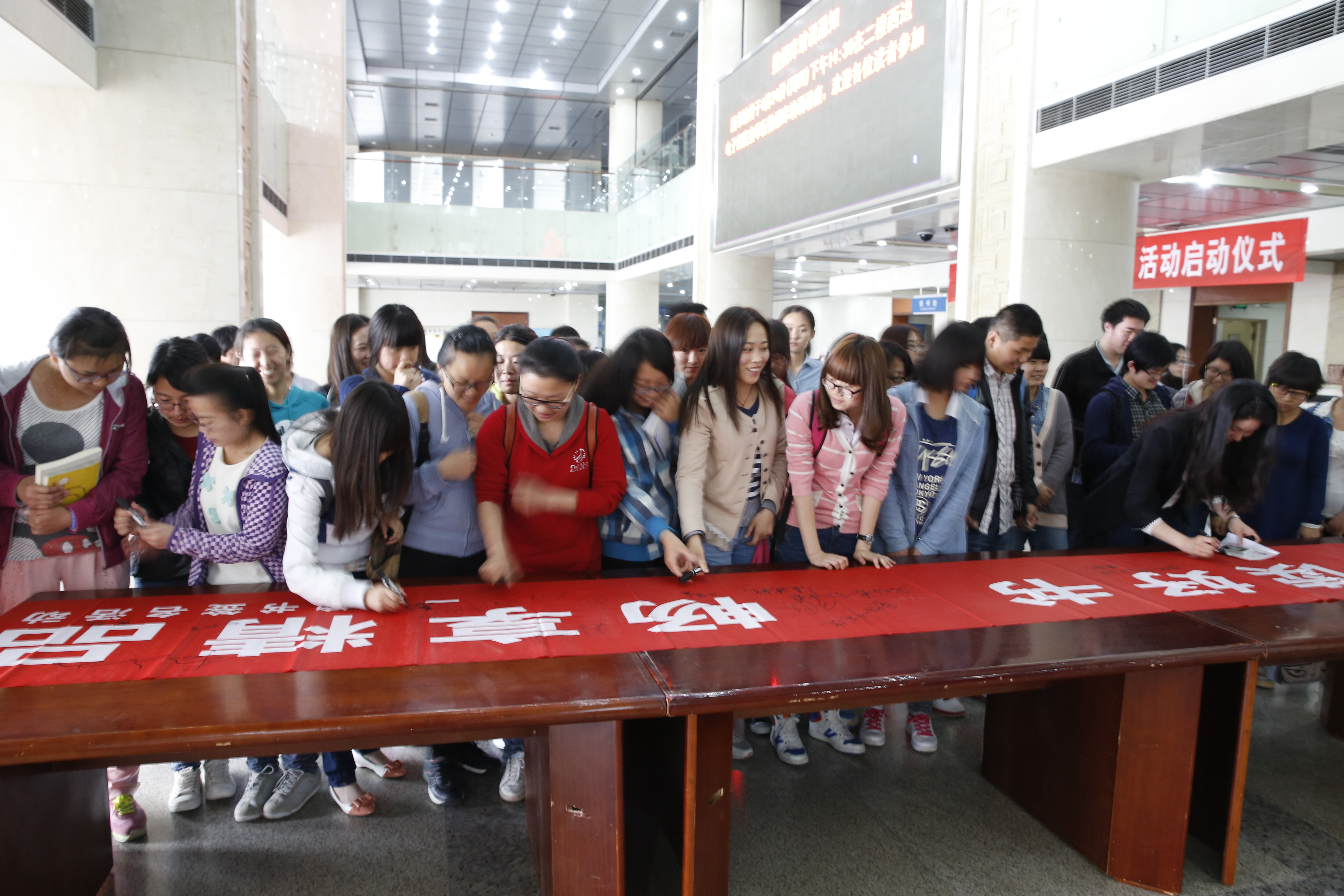 启动仪式后,与会领导和同学们一起参加了读书签名活动,在百米长卷上郑重签名,展现读书风采,传播读书热情。而气氛热烈的读书知识有奖问答活动,更是激发了在场师生读者的积极性,纷纷踊跃参加。