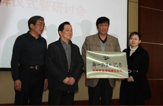 原郑州教育电视台台长周怀军在讲话中谈到,郑州教育电视台与我校的合作渊源深远,此次挂牌将进一步推动市属教育媒体与市属高校的合作深度和广度。郑州教育电视台是国内为数不多的电教馆、电视台、教育网、教育报“四位一体”的立体平台,影响力和点击量均排名国内教育类媒体前三名。此次郑州教育电视台通过整合内部资源,打造全媒体立体媒体平台,实现宣传报道的快速化、立体化,推动台校全面合作。