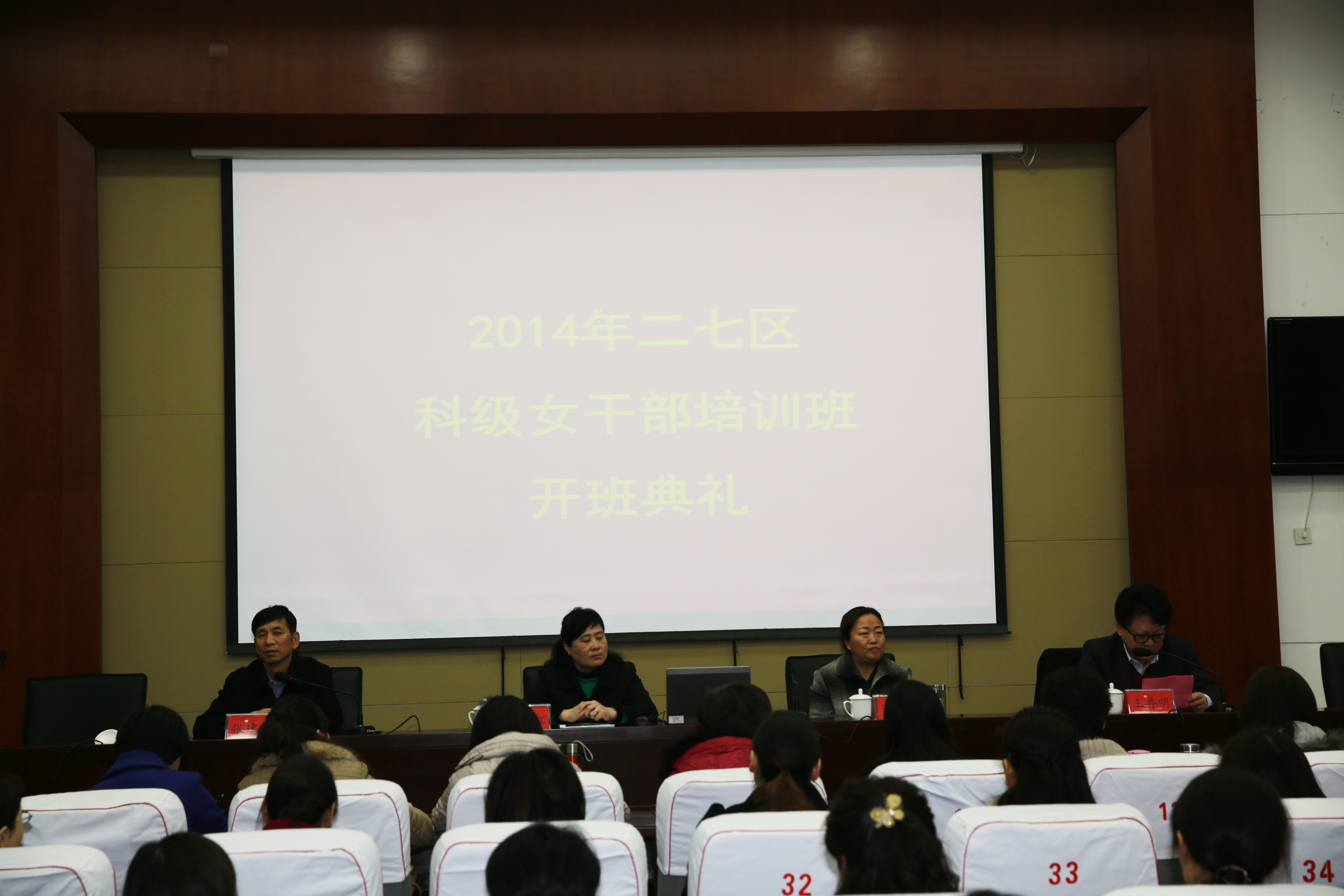 3月2日上午,二七区女干部培训班在图书馆10楼报告厅隆重开班。郑州女子学院院务委员会副主任、郑州师范学院党委书记于向英,副院长张建航,二七区区委书记蔡红,区委常委、宣传部长王鲁明以及75名来自二七区各乡(镇)街道、区直各单位优秀副科级女干部参加了开班仪式。