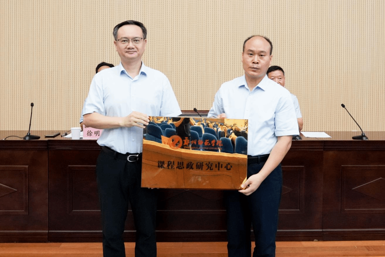 为深入贯彻落实习近平总书记关于思政课建设的重要讲话、构筑起全员、全过程、全方位的“三全育人”体系,7月9日,学校召开课程思政研究中心成立暨课程思政建设工作研讨会。副校长胡明生参加研讨会,并为课程思政研究中心授牌。各学院院长、教学副院长、基层教学组织负责人,相关职能部门工作人员及马克思主义学院全体教师参加会议。