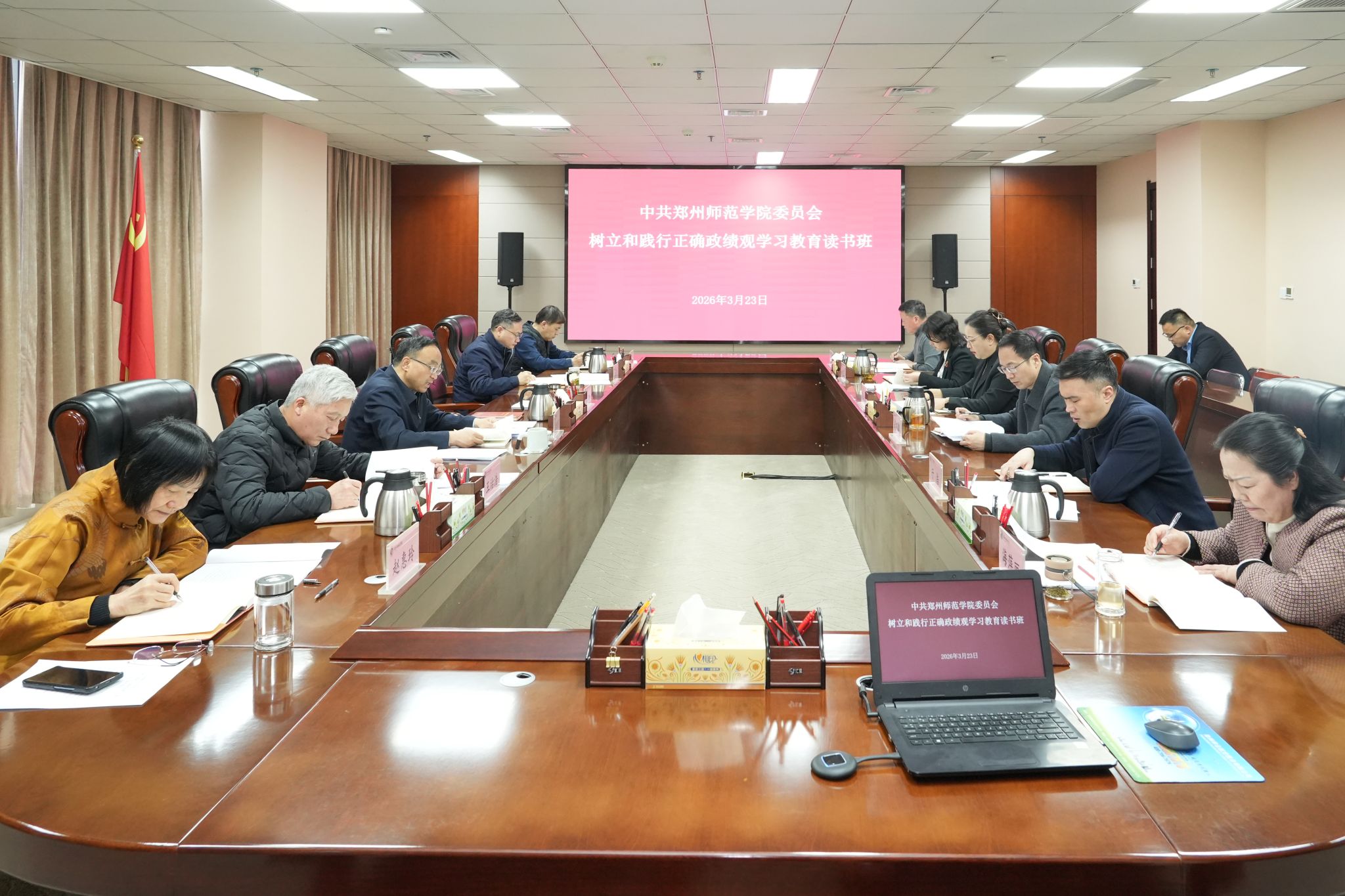 3月23日至24日,郑州师范学院党委用两天时间,采取领读领学、集中自学和交流研讨相结合的方式,举办树立和践行正确政绩观学习教育读书班。党委书记李仰智领学了《习近平关于树立和践行正确政绩观论述摘编》第一章和《习近平总书记地方工作期间坚持正确政绩观生动实践》“河北正定篇”“福建篇”。班子成员和党委委员作交流发言。
